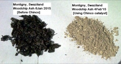 • SOx and NOx can be reduced drastically by using the harmless and non toxic natural CHINCO Coal Catalyst. Conclusive independent test carried out at Rooiwal Power Station and several other Companies, including some in China. The percentage drop in using the catalyst was amazing. This is achieved through improved combustion by reducing the ignition temperature of the coal plus its hydro carbon contents such as soot char and even sulphur. Combustion thus starts earlier and is more complete. See these results in the independent test at Rooiwal Power Station. (LINK) Another reason for the reduction of SO2 is the Mn02 in the CHINCO mix reduces SO2 to a harmless sulfate that is then removed through the ash. (MnO2+ SO2→ MnSO4 )