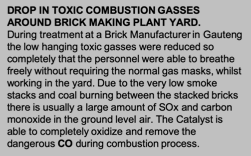 There are other suppliers of coal additives, but our catalyst is unique and the only product that not only keeps the boiler clean, but also reduces sulphur emissions (Cause of industrial acid rain). The results of recent tests carried out independently by various clients, showing a halving of poisonous gasses, is attached below.